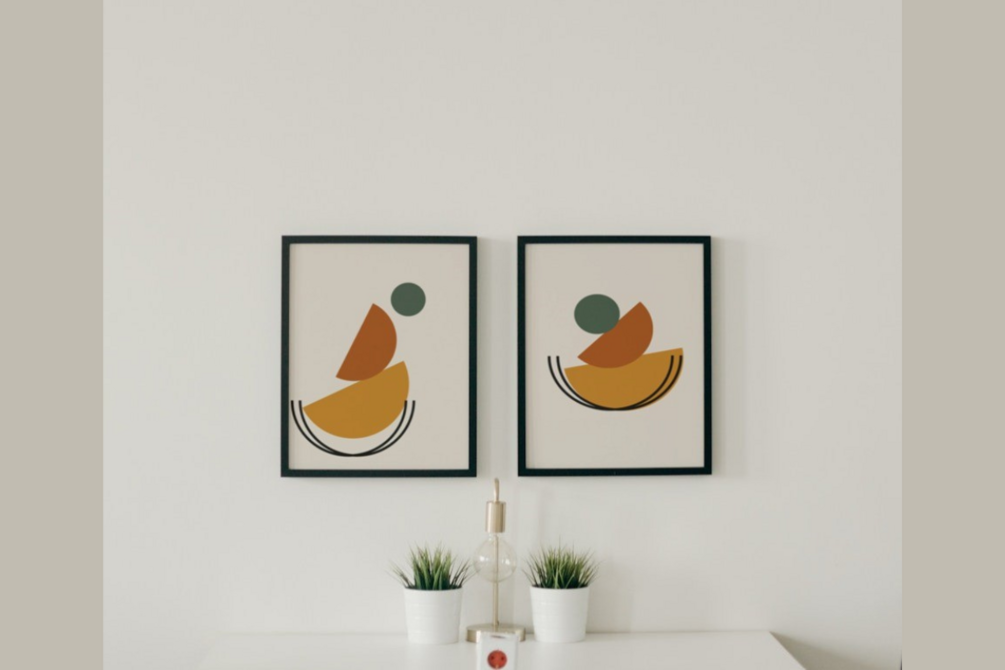 Set of 2 Retro Minimalist Geometric Wall Art Printable ,Abstract Minimalist Wall Art, Boho Wall Art, Bohemian Wall Decor, Colorful Prints, Boho Wall Decor, Prints. Hand draw shape design for wall framed prints, canvas prints, poster, home decor.