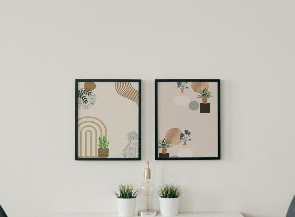 Set of 2 Retro Minimalist Plant Wall Art Printable ,Abstract Minimalist Wall Art, Boho Wall Art, Bohemian Wall Decor, Colorful Prints, Boho Wall Decor, Prints. Hand draw shape design for wall framed prints, canvas prints, poster, home decor.